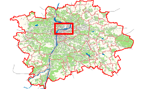 part of the city marked by the red rectangle above is magnified to the